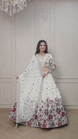 Chic Semi-Stitched Lehenga in Faux Georgette with Sequin and Thread Embroidery