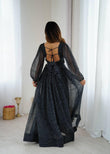 Flared Georgette Maxi with Balloon Sleeves & Soft Micro Lining